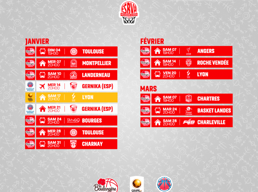 Les billetteries pour les 3 premiers matchs de l’année au Palacium sont ouvertes ! Rendez-vous ici pour réserver vos billets : https://esbva-lm.com/billetterie/