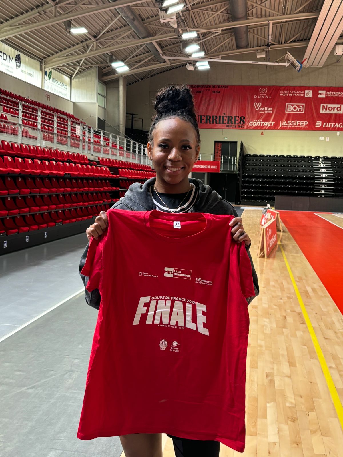 AccueilTraining - LifestyleT-shirt finale coupe de France 2026 T-shirt finale coupe de France 202610.00€ En stock Choisissez votre taille Sélectionner une option S M L XL XXL XS Prix du produit: 10.00€ Total des options: Total de la commande: quantité de T-shirt finale coupe de France 2026 Ajouter au panier Catégories : Noël, Training - Lifestyle Product ID: 16321 Description Informations complémentaires Description Retrouvez le T-shirt de la finale de la coupe de France 2026 face à Basket Landes ! Informations complémentaires tailles XS, S, L, M, XL, XXL Produits similaires Out of stock T-shirt « Guerrières » BLANC 25-26 15.00€ Choisir la taille Chaussettes ESBVA-LM 13.00€ Ajouter au panier Ce produit a plusieurs variantes. Les options peuvent être choisies sur la page de produit Doudoune blanche ESBVA-LM 50.00€ Ajouter au panier